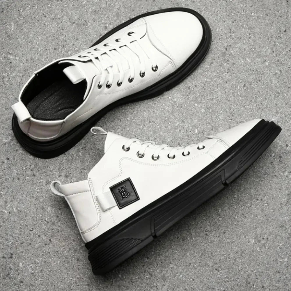 The Bexton high-top sneakers are crafted to exude a modern yet understated elegance. Featuring a 8cm (3" inches) discreet boost for a confident lift, these sneakers blend urban flair with elevated design. Bexton ensures durability and a polished finish, while the high-top silhouette and sleek design offer a bold statement. Perfect for adding an extra edge to your casual or smart-casual ensembles, Bexton stands out as a go-to choice for those who value style, comfort, and versatility.